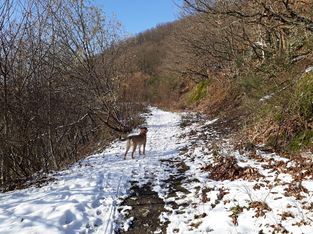 Im Februar hatten wir Glück mit dem Schnee: Der Garten lag tief verschneit und Lola und ich nahmen uns die Zeit, eine lange Wanderung oben um den Meuchelberg zu machen. Wir stapften durch den tiefen Schnee und bewunderten die Aussicht.