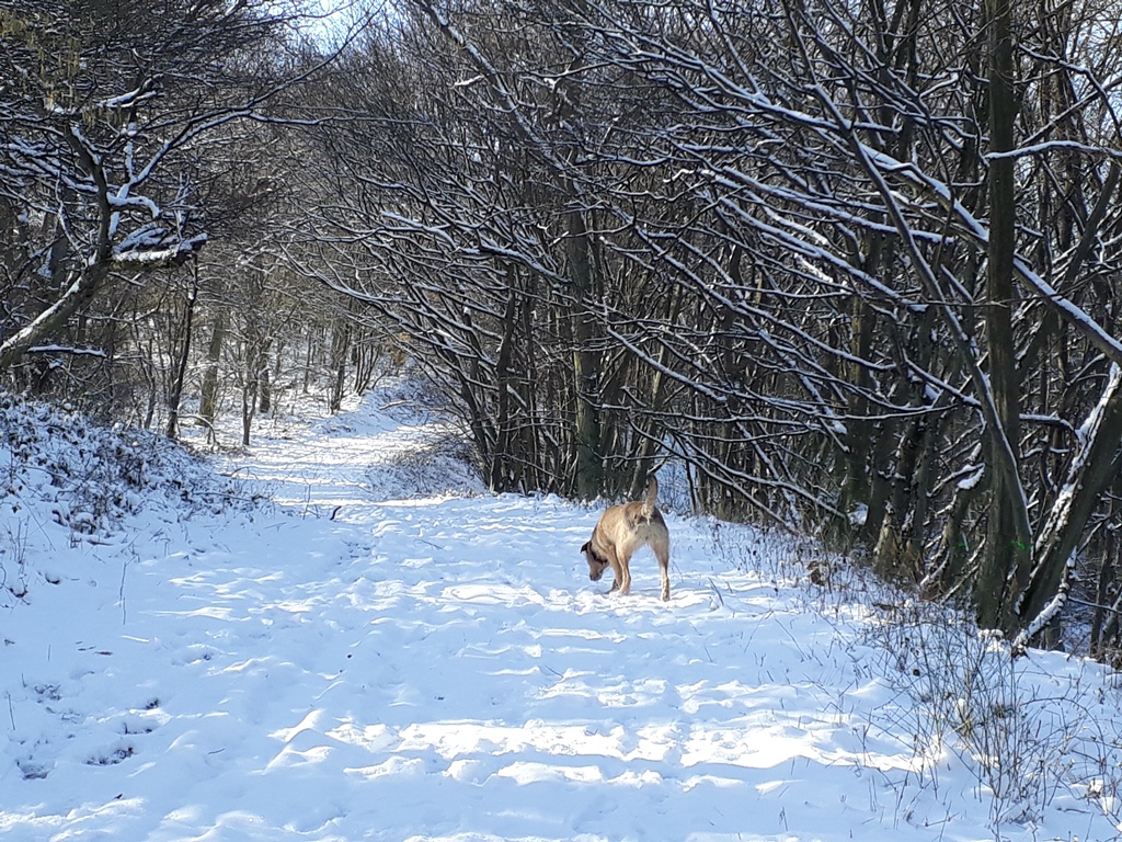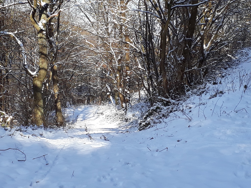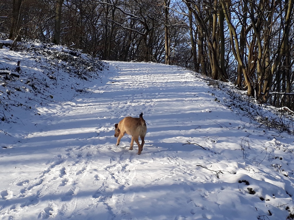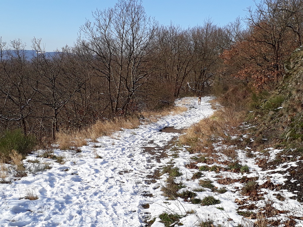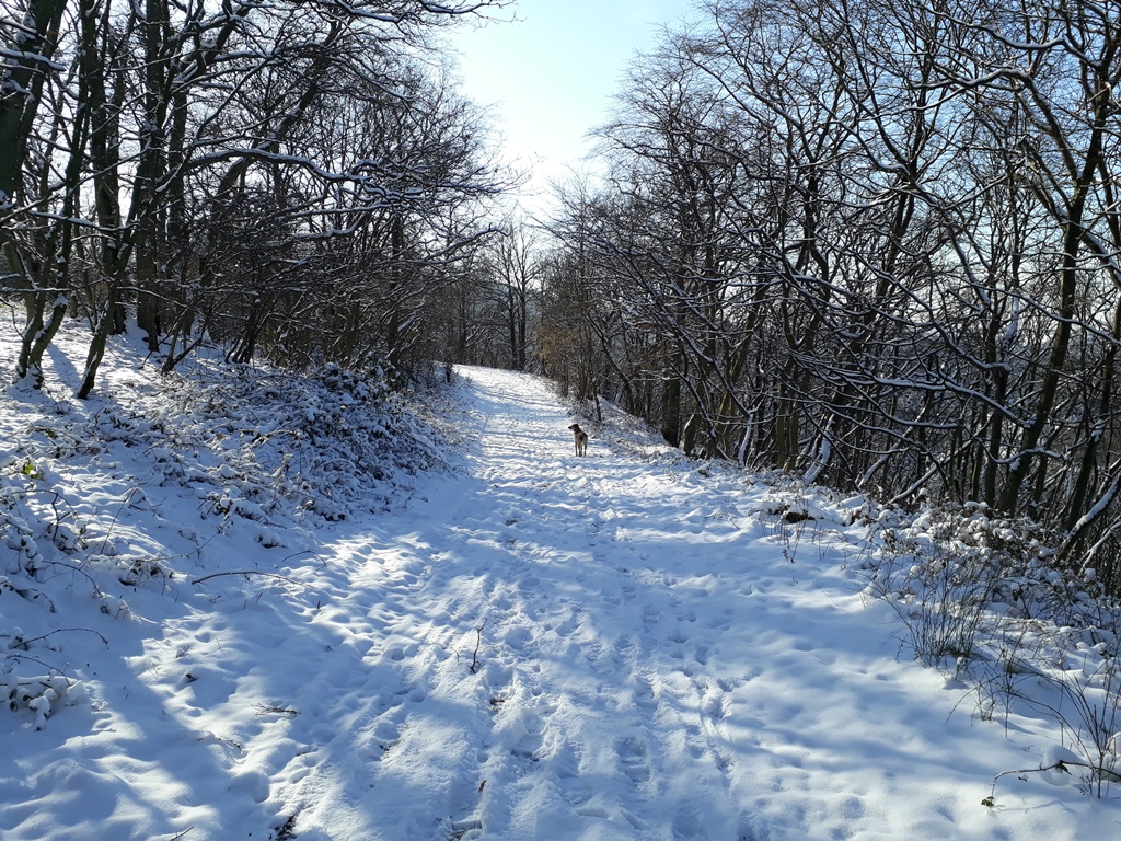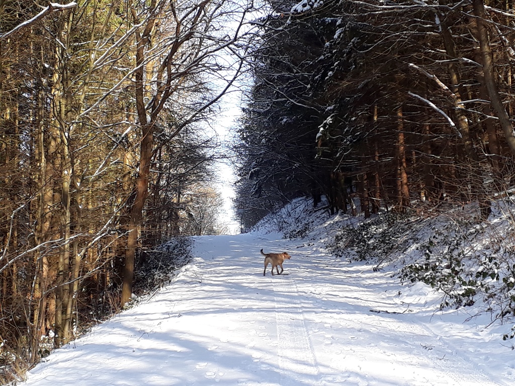 Im Februar hatten wir Glück mit dem Schnee: Der Garten lag tief verschneit und Lola und ich nahmen uns die Zeit, eine lange Wanderung oben um den Meuchelberg zu machen. Wir stapften durch den tiefen Schnee und bewunderten die Aussicht.